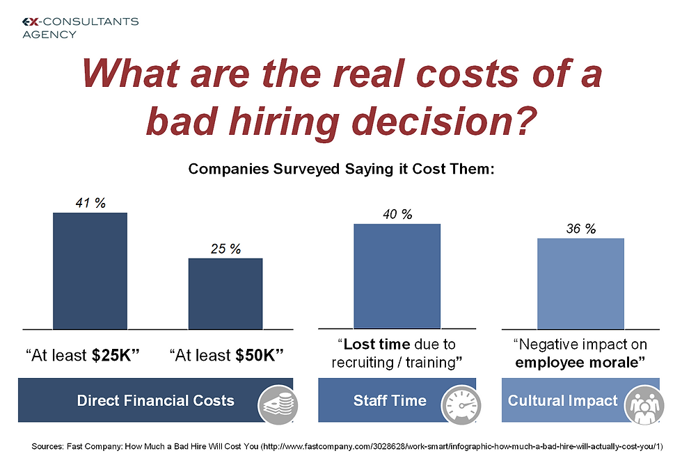 Hiring the wrong person can be detrimental.Not only do companies see huge financial costs associated with a bad hiring decision, but there are other, indirect costs.